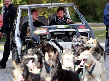 Elevene tar også vare på mer enn 60 Alaska huskyer. Hundekjøring er en populær aktivitet, og Kronprins Haakon fikk selv prøve seg med hundespann.