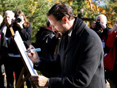 Etter ei mottaking i Kragerø hamn fekk Kronprinsen og Kronprinsessa ei omvising i Kittelsenmuseet. Deretter gjekk turen opp på Steinmannen – utsiktspunktet over Kragerø. Her teikna Kronprins Haakon og Kronprinsesse Mette-Marit signaturane sine, for plassering ved sida av namnetrekka til Kong Harald og Dronning Sonja.