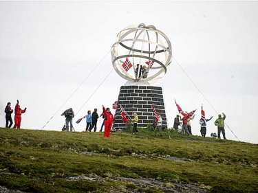 Etter ei offisiell mottaking spaserte Kong Harald og Dronning Sonja opp til kystkvinnebautaen og minnebautaene over omkomne på havet, der Kongeparet la ned krans.