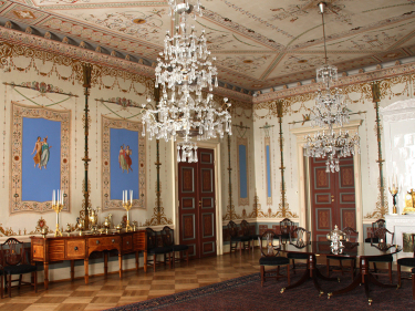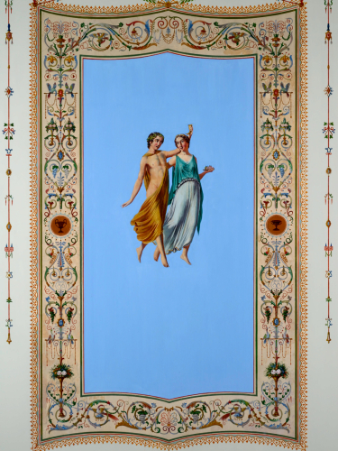 Go Linstow barggai dán sála planemiin, de ledje seaidnemáleriijat inspirerejuvvon dain gávdnosiin maid ledje gávdnan Pompei ja Herculaneum roggamiin, mat dalle ledje alimus motan Eurohpas. Sihke Gonagasa almmola boradansála Christiansborggas Københámmanis (1833) ja tsarbearraa priváhta boradansála Dálvepalassas St. Petersburggas (1837) ledje hervejuvvon pompeianska stiilla mielde.