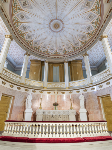 Goabbat bealde váldokapeallalanja leat siidolanjat galleriijaiguin main leat guhtta stoalppu goappáge guhkesseainni bealde. Dáid siidolanjaid ovddabeallái leat derpojuvvon gipsrelieffat mat čájehit dan njeallje evangelistta, daid lea duddjon govvačuolli Hans Michelsen.