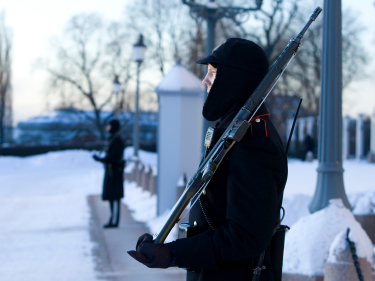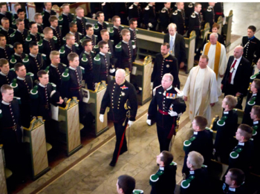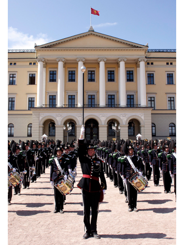 Gonagaslaš šloahta ja Akershus festning váktabálvalusa bargiin leat sin mihtilmas parádeuniforpmat badjelis go leat váktabarggus, main seremoniála bealli deattuhuvvo garrasit.
