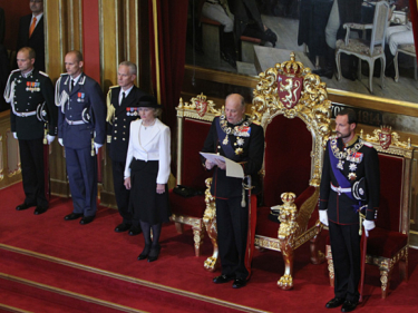 "Så snart Stortinget har konstituert seg, opnar kongen eller den han set til det, forhandlingane med ei tale om tilstanden i riket og dei emna han særleg vil gjere Stortinget merksam på. Inga drøfting må skje med kongen til stades."