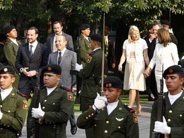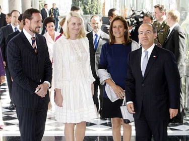 Almmolaš buresboahtinseremoniija lágiduvvui Mexico Presideantta, Los Pinos gárdimis. Doppe vuostáiválddiiga Presideanta Felipe Calderón ja su roavvá Margarita Zavala Ruvdnaprinssa Haakona ja Ruvdnaprinseassa Mette-Marita unna tempelaččas mii gullá sudno residensii. Ruvdnaprinsabárra ja Presideanta Calderón ja su roavvá Zavala dolle maid čoahkkima maŋŋil.
