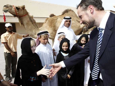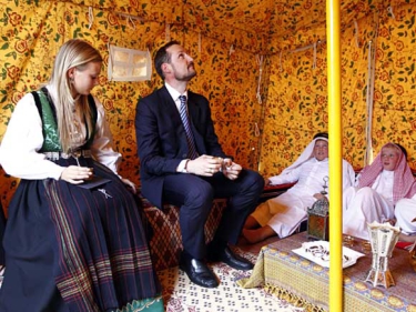 Veaigin deaivvadii Ruvdnaprinsa mearraolbmáid guovddáis muhtun norgalaččaiguin geat ásset Dubaias. Dát báiki lea dán guovllu skandinávalaččaid deaivvadanbáiki. Sis lea doppe fásta prográmma masa gullet lávlunjoavku, iđđesdeaivvadeapmi, lámmohallan, filbmaeahket, ipmilbálvalusat ja tuvravázzin.