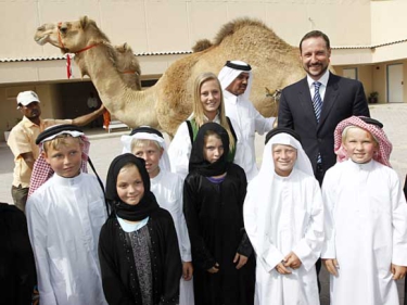 Go lei geargan Qatalumis, de finai Ruvdnaprinsa Haakon Qatar norgga skuvllas. Doppe son beasai daivvadit skuvlamánáiguin geat vázzet dien skuvllas. Mánát ledje ráhkadan ieaset čájáhusa mas ovdanbukte movt sin eallin Qataris lea, sihke skuvlaárgabeaivi ja ástoáigi.