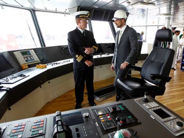 Ruvdnaprinsa Haakon ja Qatar Emira, Allavuohta Sjeik Hamad bin Khalifa al-Thani, čuovuiga ovttas dan allaáiggala rahpama, ja dan maŋŋá čájehedje ja muitaledje sudnuide industriija birra.