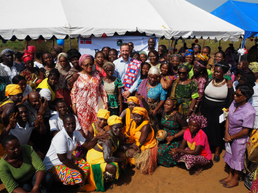 Ruvdnaprinsa Haakon guossástallamin Kazungula gili Zambias, oaidnin dihtii movt dálkkádagaid nuppástuvvamat čuhcet sin birgejupmái. Govva: Stein J. Bjørge.