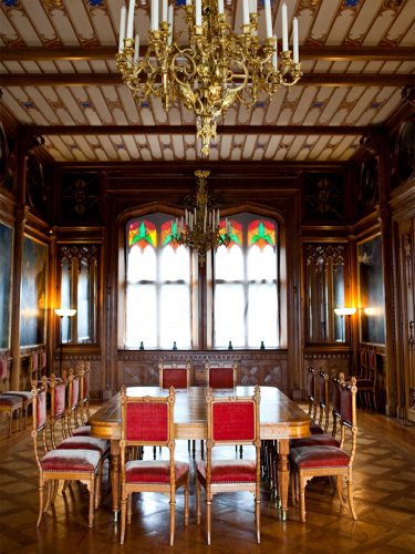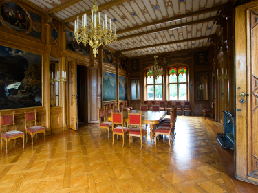 "Naar man kommer ind i Spisesalen, udsættes man for at blive uretfærdig mod Arkitekten, idet man næsten glemmer at betragte hans med Kunst og Smag udførte Arbejde, Taget, de herlige spidsbuede Vinduer og den kunstige [sic!] Egetræes Paneling, og henvender sin hele Opmerksomhed paa de i Panelingens Felt indfattede Malerier, Frichs sex Landskaber og Tidemands bekjendte Fremstilling av en Bondefamilies Liv."