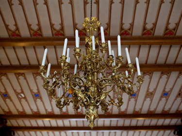 Lanjas leat njeallje láse main leat máŋggaivnnát ladjoláset, bárralaga biddjojuvvon ja birasiin lea duolba tudorgeavli. Oanehis seinniin leat seamma mállet láset go Saloŋggas, dain leat rukses, oráne ja sevdnjesfiskes ivnnát láset maid bajemus ravddat leat ruoná ivnnis. Juohke seainnis lea speajal mii buktá millii dakkár dovddu ahte lanjat leat stuorábut go dat duohtavuođas leat. Seinniin leat čábbát hervejuvvon panelat ja áikepilasterat mat maid leat hervejuvvo, daid bajemus oasis leat muorrakonsollat main lea njuvččaid hápmi. Dát njukčahámát konsollat dollet badjin doares rohpebielkkaid. Bielkkaid gaskkat leat hervejuvvon oktageardánis ođđagohtala rukses-, alit- ja golleivnnát ornameanttaiguin vilges duogáa alde.