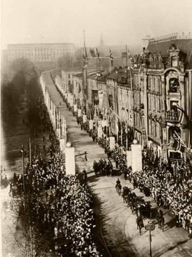 Oslo lei čiŋahuvvon heajaide, ollu visttit ja gáhtat ledje čiŋahuvvon leavggaiguin. Náitaleaddjit čađaheigga golmmadiibmosaš dearvvahanmátkki Oslos, oahpásnuvvama várás ja soai dearvvaheigga olbmuid gáhtaid alde. Maŋit beaivvi lei bálla Šloahtas, ja maŋit eahkeda lei feastačájahus Nationaltheatreris.