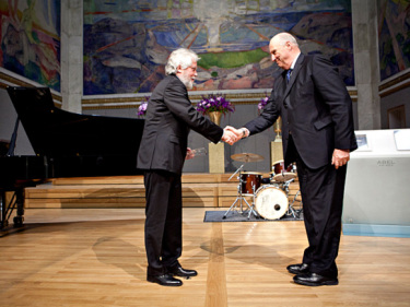 Abelprisen22. mai: Kong Harald overrekker Abelprisen til matematikeren Endre Szemerédi i Universitetets Aula (Foto: Anette Karlsen / NTB scanpix) -