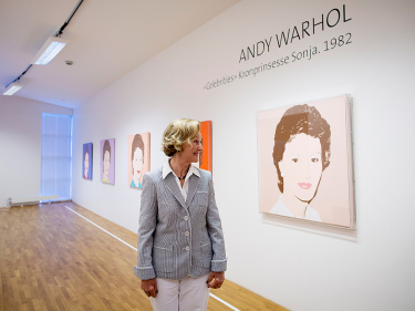 Landskap og rom14. juni: Dronning Sonja stiller ut deler av sin egen kunstsamling - og egne grafiske verk - i utstillingen <i>Landskap og rom </i>på Henie-Onstad kunstsenter. Portretter Andy Warhol laget av Dronningen er en del av utstillingen (Foto: Kyrre Lien / NTB scanpix) -