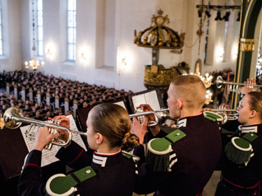 Gardens kirkeparade11. desember: Kong Harald og Kronprins Haakon er til stede i Oslo domkirke under den tradisjonelle kirkeparaden for gardistene. (Foto: Thomas Iversen / NTB scanpix) -