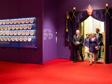 Den kongelige reise15. februar: Kongen og Dronningen mottar Regjeringens gave til deres 75-årsdager, utstillingsrekken Den kongelige reise, ved et arrangement på Kunstindustrimuseet (Foto: Gorm Kallestad, Scanpix) -