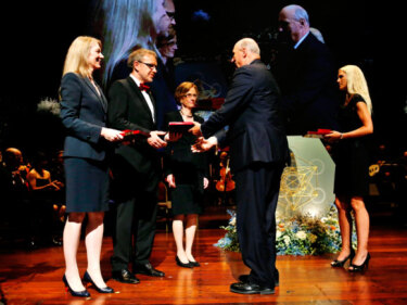 Kavliprisen4. september: Kong Harald deler ut Kavliprisene 2012 - her prisen for nevrovitenskap til Ann Martin Graybiel, Winfried Denk og Cornelia Isabella Bargmann i Oslo konserthus (Foto: Erlend Aas / NTB scanpix) -