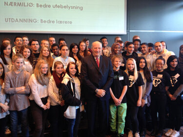 Dronningens skolepris29. november: Dronning Sonja overrekker Dronning Sonjas Skolepris for 2012 til elever og lærere på Fagerlund skole (Foto: Fredrik Varfjell / NTB scanpix) -