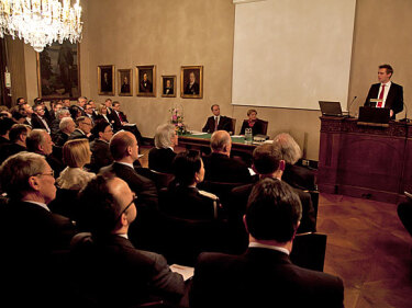Energi- symposium1. februar: Kong Harald er til stede på symposiet om norsk energipolitikk i regi av Det Norske Videnskaps-Akademi (Foto: Eirik Furu Baardsen, Det Norske Videnskaps-Akademi) -