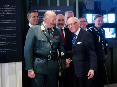 INTOPS8. mai: Kong Harald er til stede ved åpningen av utstillingen INTOPS - om Norges internasjonale operasjoner, Forsvarsmuseet på Akershus (Foto: Kyrre Lien / NTB scanpix) -