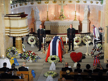 Bisettelse25. mai: Kong Harald er til stede ved bisettelsen av Gunnar "Kjakan" Sønsteby i Oslo Domkirke (Foto: Kyrre Lien / NTB scanpix) -