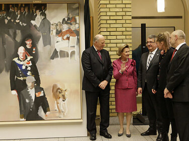 Maleri av edsavleggelsen20. november: Kongeparet er til stede ved avdukingen av maleriet som viser Kongens edsavleggelse i Stortinget 21. januar 1991 (Foto: Berit Roald, NTB scanpix) -
