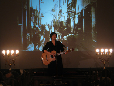 Minnekonsert26. november: Kong Harald er til stede under minnekonserten for de 532 norske jødene som ble deportert med det tyske skipet «Donau» og fraktet til Auschwitz. Sangeren og gitaristen Bente Kahan under konserten «Home» (Foto: Sven Gj. Gjeruldsen, Det kongelige hoff) -