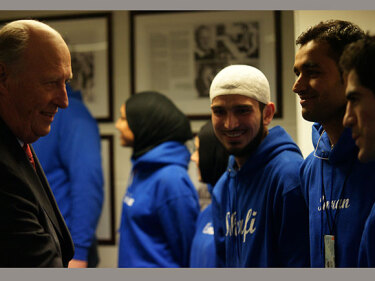 Unge på Furuset23. april: Kong Harald besøker ungdom på Furuset i Oslo (Foto: Elanchelian Nadarajah, Bydel Alna, Oslo kommune) -