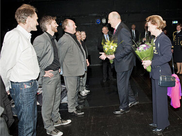=Oslo29. mars: Kongen og Dronningen ser forestillingen =Oslo på Det Norske Teater. Etter forestillingen møtte Kongeparet skuespillere og representanter fra bladet forestillingen bygger på (Foto: Fredrik Varfjell, Scanpix). -