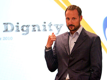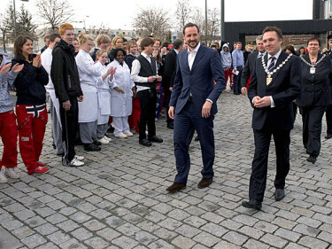 Dignity Day på Ulsrud21. april: Kronprins Haakon deltar på "Dignity Day" på Ulsrud videregående skole i Oslo (Foto: Berit Roald / Scanpix) -