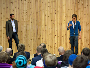 Global Dignity Day20. oktober: Kronprins Haakon markerer Global Dignity Day sammen med professor Pekka Himanen på Bodø Videregående skole (Foto: Global Dignity Norge) -