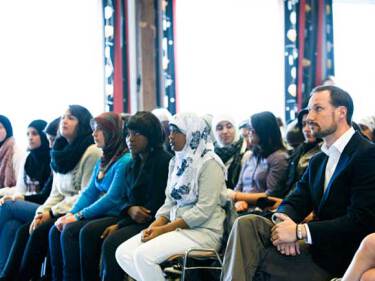 Ung Dialog1. november: Kronprinsen deltar i dialogmøte om verdighet på tvers av religioner med gruppen Ung Dialog (Foto: Kirsti Svenning / Nobels Fredssenter) -