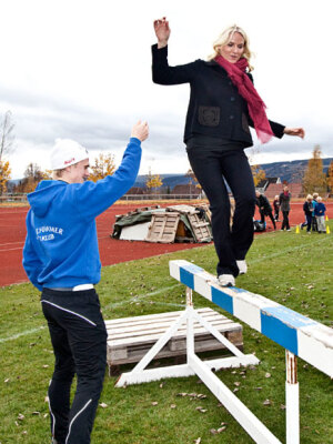 Besøk på Lillehammer18. oktober: Kronprinsessen besøker Aktivitetsskolen, Bibliotek og Røde Kors på Lillehammer, før åpningen av Yrkes-NM på Maihaugen. Her på bom i regi av Aktivitetsskolen (Foto: Geir Olsen / Scanpix) -