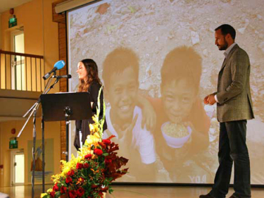 Dignity Day Lier24. september: Kronprinsen deltar på Dignity Day på St. Halvard videregående skole i Lier. Her med Frida Myhrer som forteller om sine opplevelser fra Filippinene (Foto: Liv Osmundsen, Det kongelige hoff) -