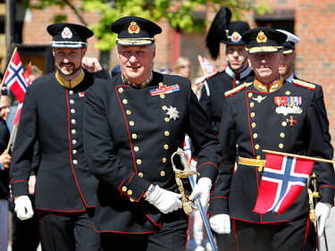 Inspeksjon av Garden4. juni. Kong Harald inspiserer sin garde i Huseby leir. Kronprins Haakon er også til stede (Foto: Erlend Aas / Scanpix). -