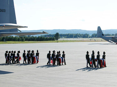 Møtte bårene1. juli: Kronprinsregenten er til stede når bårene med de falne soldatene kommer hjem til Norge fra Afghanistan (Foto: Stian Lysberg Solum / Scanpix) -