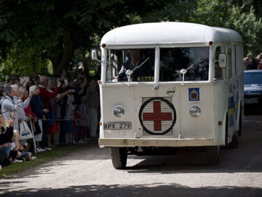 Hvite busser25. august: Kronprins Haakon og Kronprinsesse Victoria av Sverige avduker et minnesmerke over Skånes mottak av flyktninger på 40- og 50-tallet, blant annet som en del av prosjektet De hvite bussene (Foto: Bjørn Lindgren, Scanpix) -