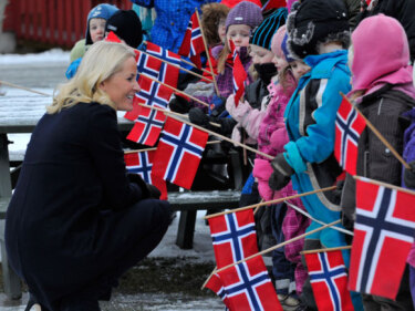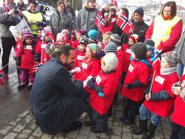 Nord-Trøndelag17. februar: Kronprinsesse Mette-Marit besøker Nord-Trøndelag. Blir tatt imot av barnehagebarn i Levanger (Foto: Ned Alley / Scanpix) -