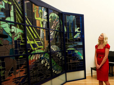The Fisher Collection25. oktober: Kronprinsen på omvisning i the Fisher Collection etter møte med Snøhetta og San Francisco MoMA som bygger et nytt galleri for å huse samlingen etter GAP-grunnleggeren, Donald Fisher. (Foto: Robert Galbraith, Reuters / Scanpix) -