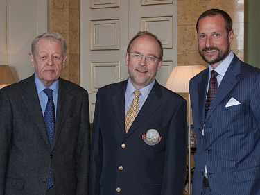Audienser22. mars: Kronprins Haakon er beskytter for en rekke organisasjoner og arrangementer, og denne dagen kom seks av organisasjonene til audiens på Slottet. Her med styreleder Kåre Valebrokk og direktør Einar Corwin i Stiftelsen Skoleskipet Christian Radich (Foto: Jan Haug, Det kongelige hoff) -