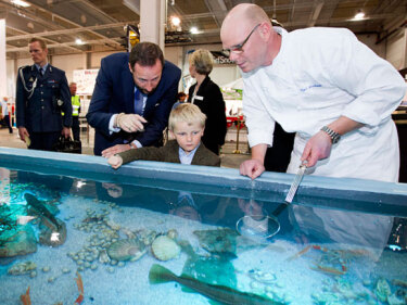 Båtmesse17. mars: Kronprins Haakon er til stede på åpningen av båtmessen Sjøen for alle. Prins Sverre Magnus er også med. Her er de sammen med med kokk Egild Noreide. (Foto: Gorm Kallestad / Scanpix) -