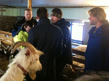 Musketerene på Nordgård10. februar: Kronprins Haakon besøker geitefjøset sammen med "musketerene" på Nordgård (Foto: Liv Anette Luane Kristensen, Det kongelige hoff) -