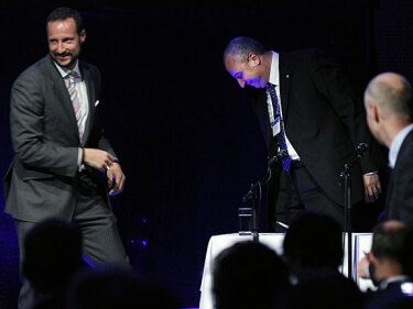 ISAM 20117. september: Kronprins Haakon er til stede ved åpningen av Internasjonal konferanse om rus- og avhengighetsmedisin, ISAM 2011 i Oslo. Her med ISAM-president Tarek Gawad under åpningen (Foto: Scanpix). -