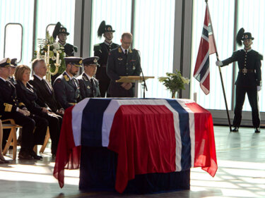 Båremottak7. april: Kronprins Haakon er til stede da båren med oberstløytnant Siri Skare som ble drept i Afthanistan 1. april ankom Gardermoen (Foto: Heiko Junge / Scanpix) -