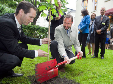 Forest Europe14. juni: Kronprins Haakon åpner ministerkonferansen "Forest Europe". Det hele ble innledet med treplanting i hagen til Det Norske Skogselskap (Foto: Heiko Junge / Scanpix) -