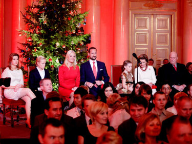 Julekonsert15. desember: Kronprinsparet er til stede når Kongen og Dronningen for første gang inviterte til julekonsert på Det kongelige slott. Konserten ble arrangert i samarbeid med Kronprinsparets humanitære fond (Foto: Stian Lysberg Solum / Scanpix)