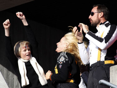Ski-VM: Dag 116. mars: Kronprins Haakon, Kronprinsesse Mette-Marit og Marius under mennenes 50 km (Foto: Lise Åserud / Scanpix) -