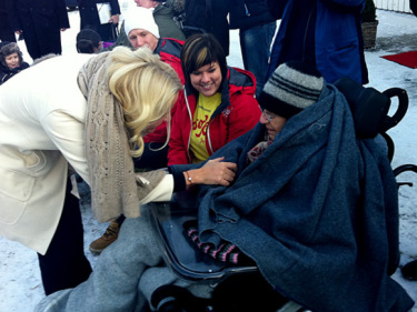 Livsglede for eldre18. februar: Kronprinsessen møter eldre som deltar i tilbudet fra Livsglede for eldre. Her er det kaffe og suppe rundt bålet utenfor Lian Restaurant i Trondheim (Foto: Christian Lagaard, Det kongelige hoff) -