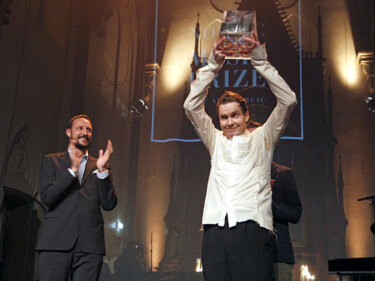 By:Larm18. februar: Kronprins Haakon deler ut Nordic Music Prize til islandske Jónsi under et arrangement i Kulturkirken Jakob i Oslo (Foto: Håkon Mosvold Larsen / Scanpix) -