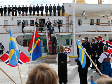 Gonagasbárra ja Ruvdnaprinsabárra čađahit almmolaš guossástallamiid olgoriikkaide – ja sii leat maid olgoriikkaid stáhtaguossástallamiid doallolágideaddjit. Seammaládje go stáhtaoaivámuččaid guossástallamiin, de lea dáid mátkkiid ulbmil maid hukset oktavuođaid ja nannet Norgga beroštumiid. Dáin albumiin gávnnat govaid muhtun stuorát almmolaš guossástallamiin maŋemus jagiid.