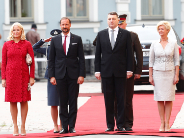 LatviaRuvdnaprinsabárra boahtimin almmolaš mállásiidda Presideantagárdimii. Govva: Lise Åserud / NTB Scanpix -